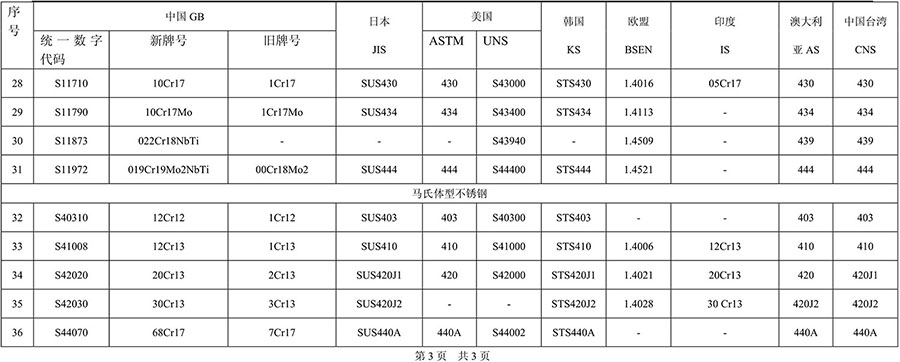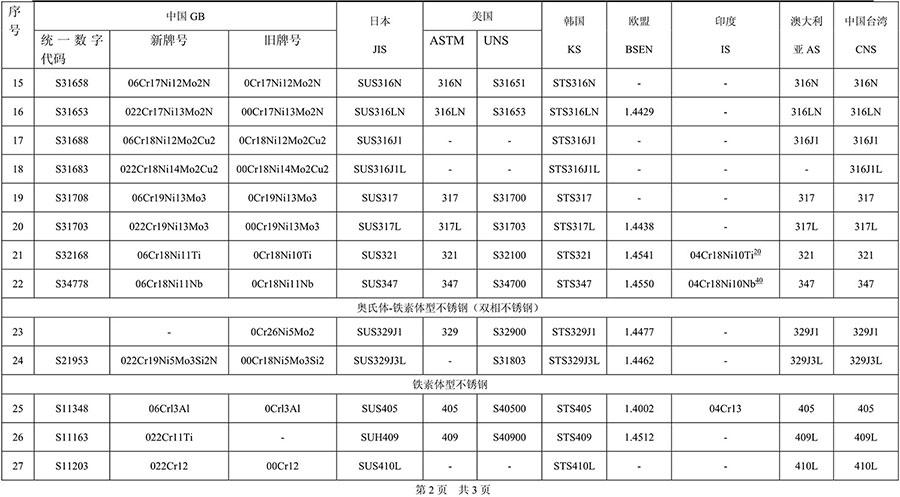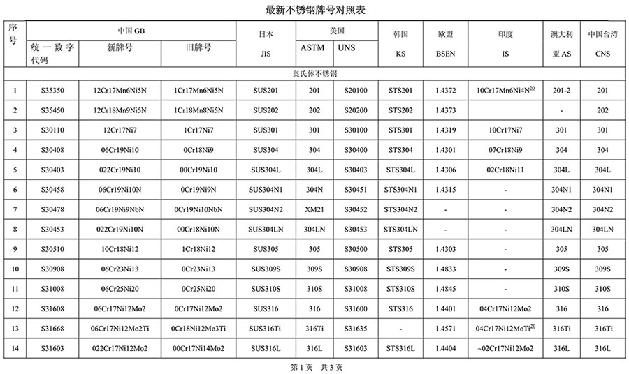 不銹鋼品牌對(duì)照表